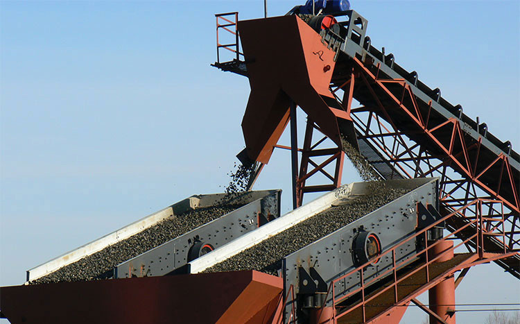 Endprodukte: 0-4mm, 4-13mm, 13-19mm, 19-25mm vier Arten grober Sand und Kies.