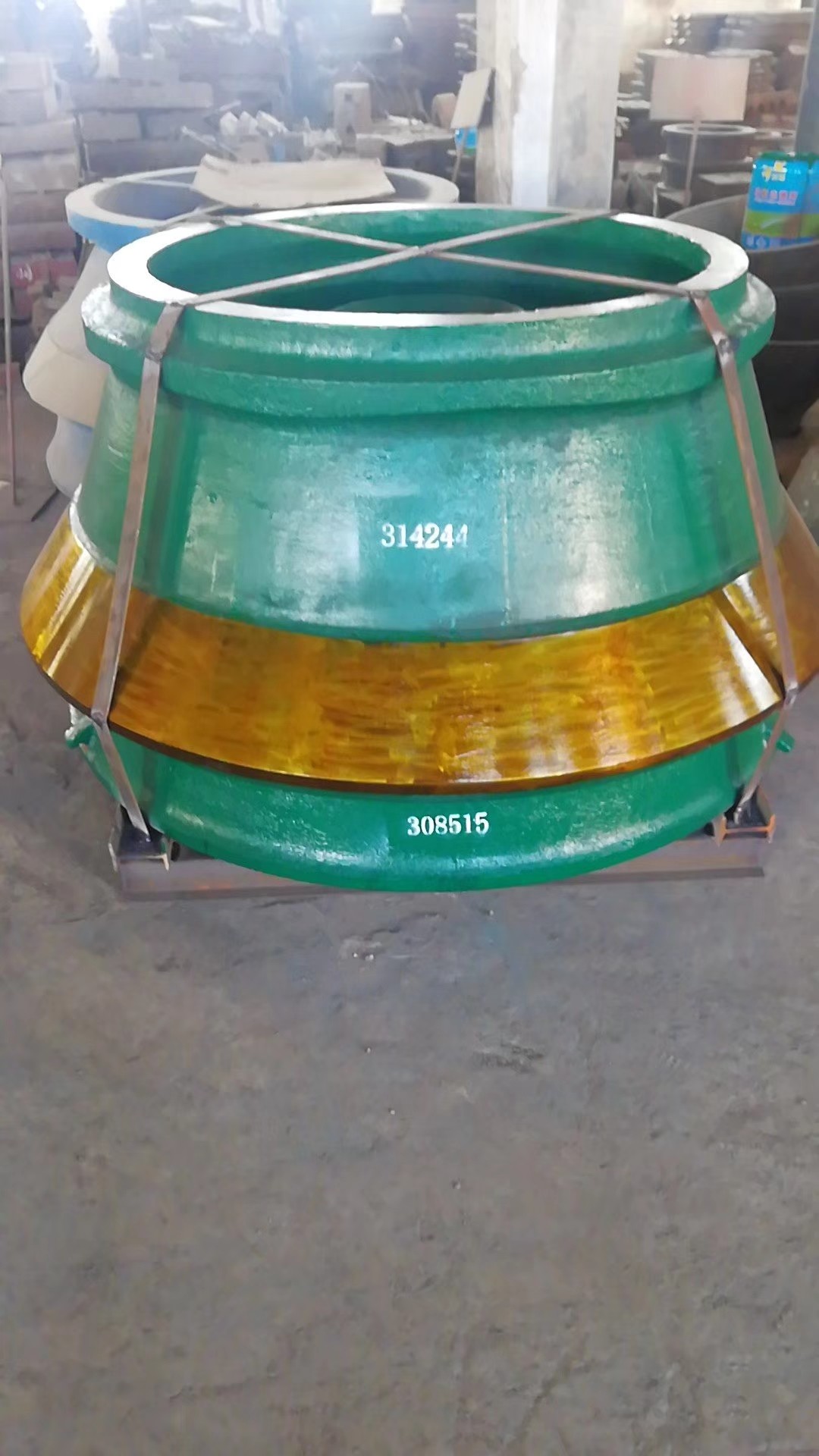 Хламида конической дробилки и вогнутые запасные части обычно сделаны из высокого марганца 13 или высокого марганца 18, в зависимости от каменной особенности. Сплав марганца отличает «работой твердеет», значит более крепко камень, оно ударит хламиду и вогнутую поверхность более крепко, тогда поверхность запасных частей будет продолжать более длиной. Марганец довольствуется рядом обычно между 13% и 22%, и обычно ссылка следующим образом: